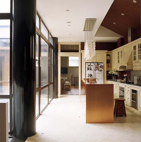 改建后,四合院增加了一整層4米挑高、由影音室、茶室、書房、保姆房、客房、中央設(shè)備室等功能區(qū)域組成的地下空間。地上一層則是主要生活區(qū),包括廚房、主臥、餐廳、兒童房以及分割出來的車庫。整座四合院內(nèi)建有現(xiàn)代的衛(wèi)浴間,并安裝了各自獨立的智能安防系統(tǒng)、中央新風(fēng)及吸塵系統(tǒng)。設(shè)施先進,一應(yīng)俱全。