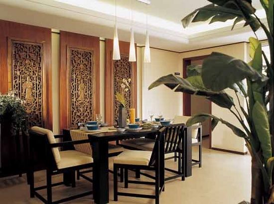在新中式裝飾風格的住宅中,空間裝飾多采用簡潔、硬朗的石料、竹木,秉承了古人對自然天地的鐘情。木材裝飾在空間中的使用,不僅反映出現代人追求簡單生活的居住要求,更迎和了中式家居追求內斂、質樸的設計風格,使中式風格更加實用、更富現代感。