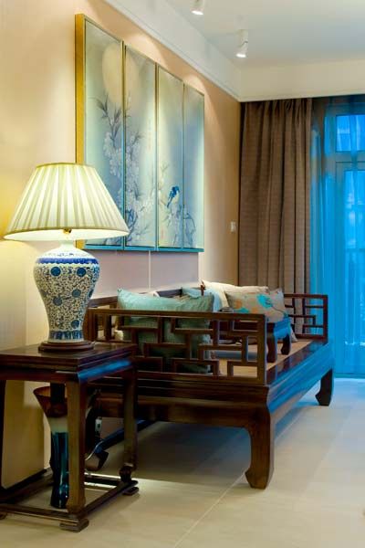 新中式的居室內色彩不易用較多,其色彩講究對比及穩重感,如中國紅和中國藍。像蘇州園林和京城民宅內飾為木色為基調,在此基礎上以皇家宮殿的紅、黃、藍、綠等作為局部點綴。